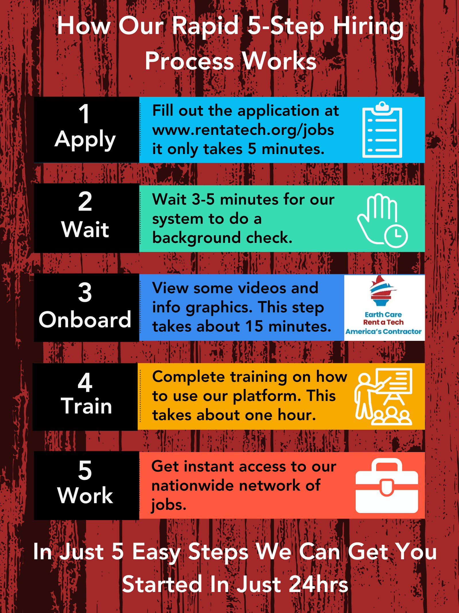 Get started working in as little as 24hrs using our Rapid Employment Application Tool.